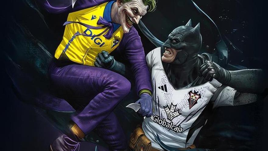 La imagen utilizada para promocionar el evento presenta a dos icónicos personajes de ficción: el Joker vestido con la camiseta amarilla del Cádiz y Batman con los colores del Albacete. En la ilustración, Batman porta un cinturón que incluye un cono naranja, lo que ha sido interpretado como una sutil referencia a Álvaro Arbeloa, actual entrenador del Real Madrid, a quien algunos críticos han apodado «cono». Esta broma se origina tras la reciente eliminación del equipo blanco en la Copa a manos del Albacete.