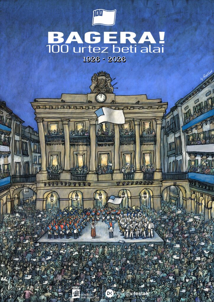 Para conmemorar este centenario, se ha diseñado una identidad propia bajo el lema ‘BAGERA! 100 urtez beti alai’. Esta celebración contará con un cartel elaborado por el artista local Roskow, que destaca la Plaza de la Constitución como el núcleo central de la festividad. Además, se distribuirán cerca de 28.000 pines conmemorativos entre las personas que participen en la tamborrada, tanto adultos como niños, como un recuerdo de esta edición histórica.
