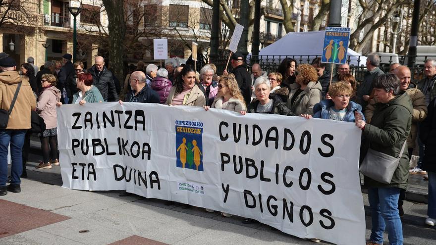 Imágenes de la manifestación en Donostia de trabajadoras de residencias y centros de día