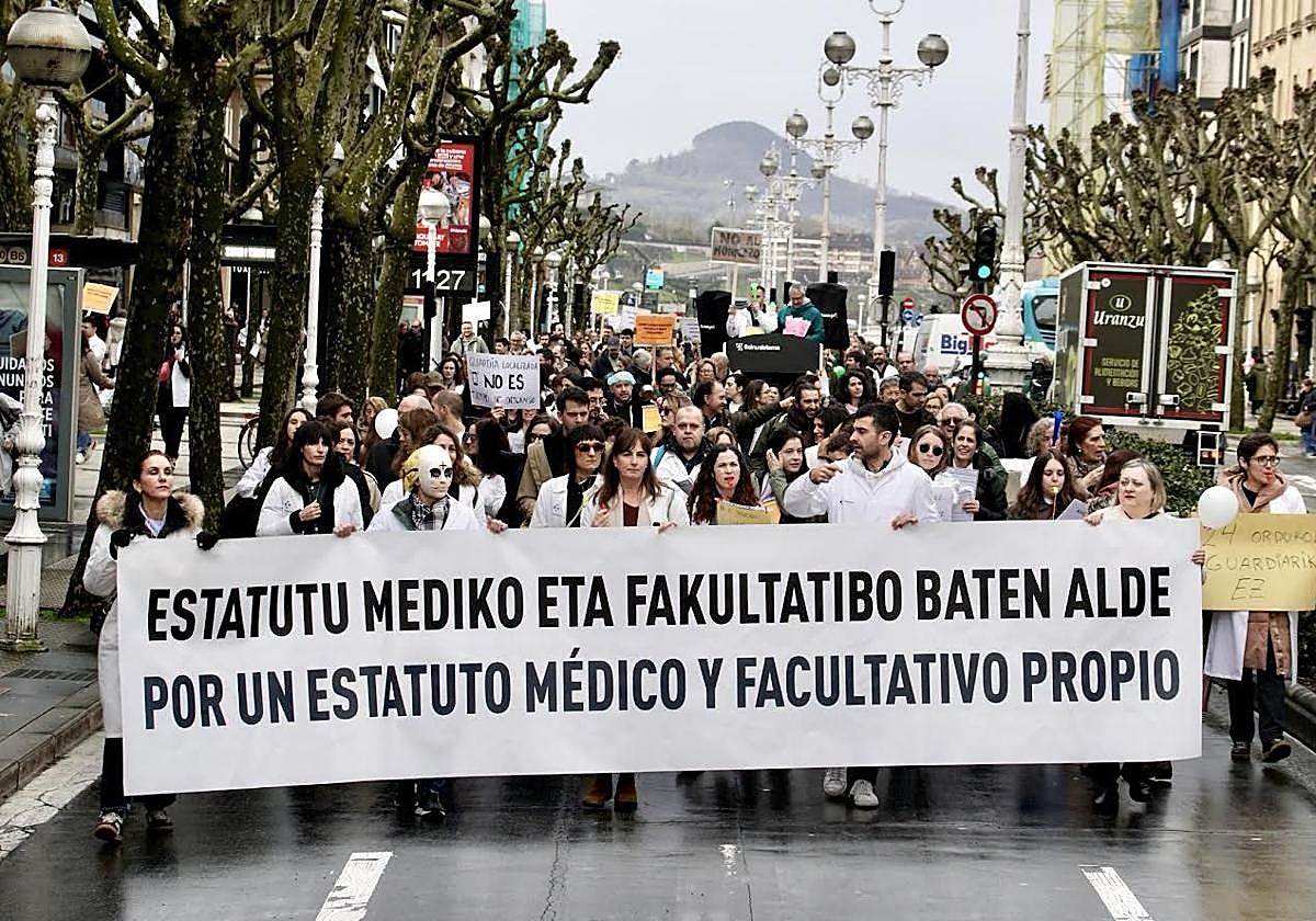 Médicos de Donostia protestan por mejores condiciones laborales en la primera semana de huelga
